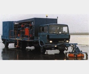 系統(tǒng)可以高效的清除由于飛機起飛降落時殘留在瀝青混凝土跑道上極難清除的橡膠和其他沉積物,同樣可以用于公路路面清洗。