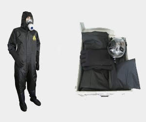 連體防護(hù)服(帶帽)、防護(hù)全面具、防護(hù)手套、防護(hù)靴、耐腐蝕屏蔽膠帶、便攜拖箱。