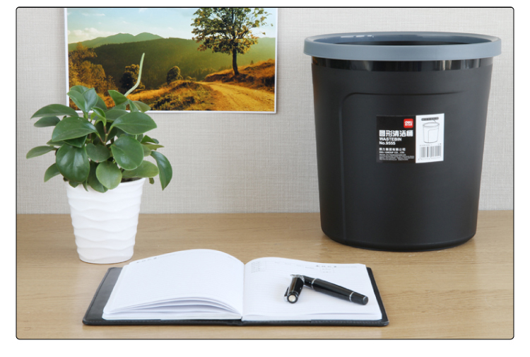 得力(deli)9555 帶壓圈耐用圓紙簍/清潔桶/垃圾桶 中號 黑色、灰色隨機