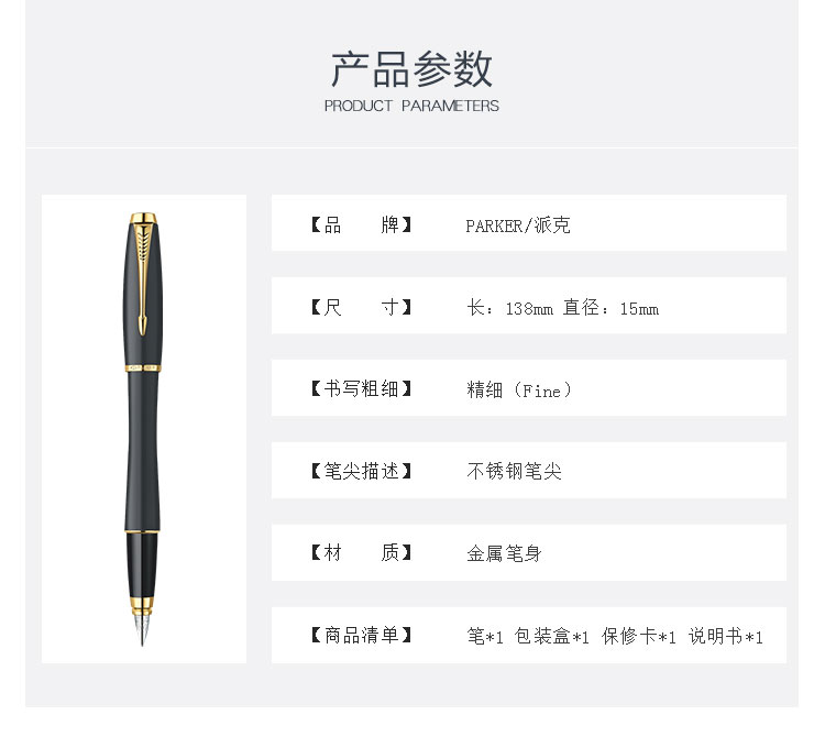 派克鋼筆 都市系列磨砂黑 F尖 單位:支