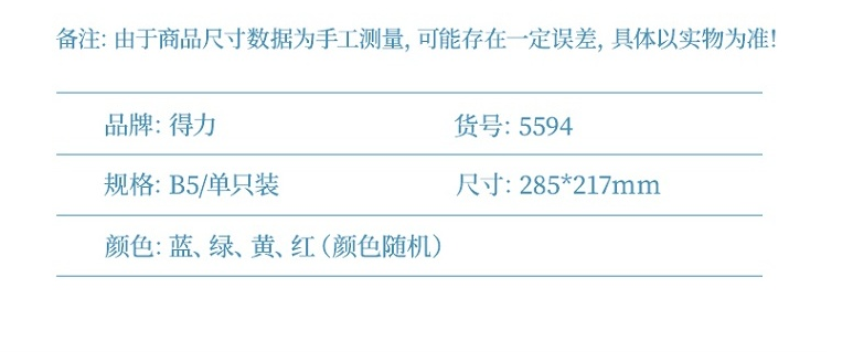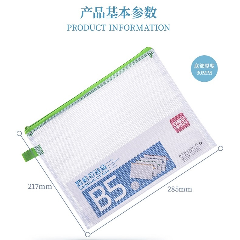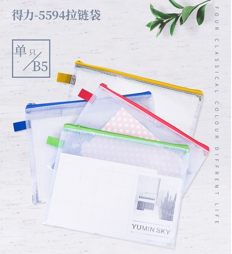 商品名稱:得力5594 B5防水網格拉鏈袋單個裝