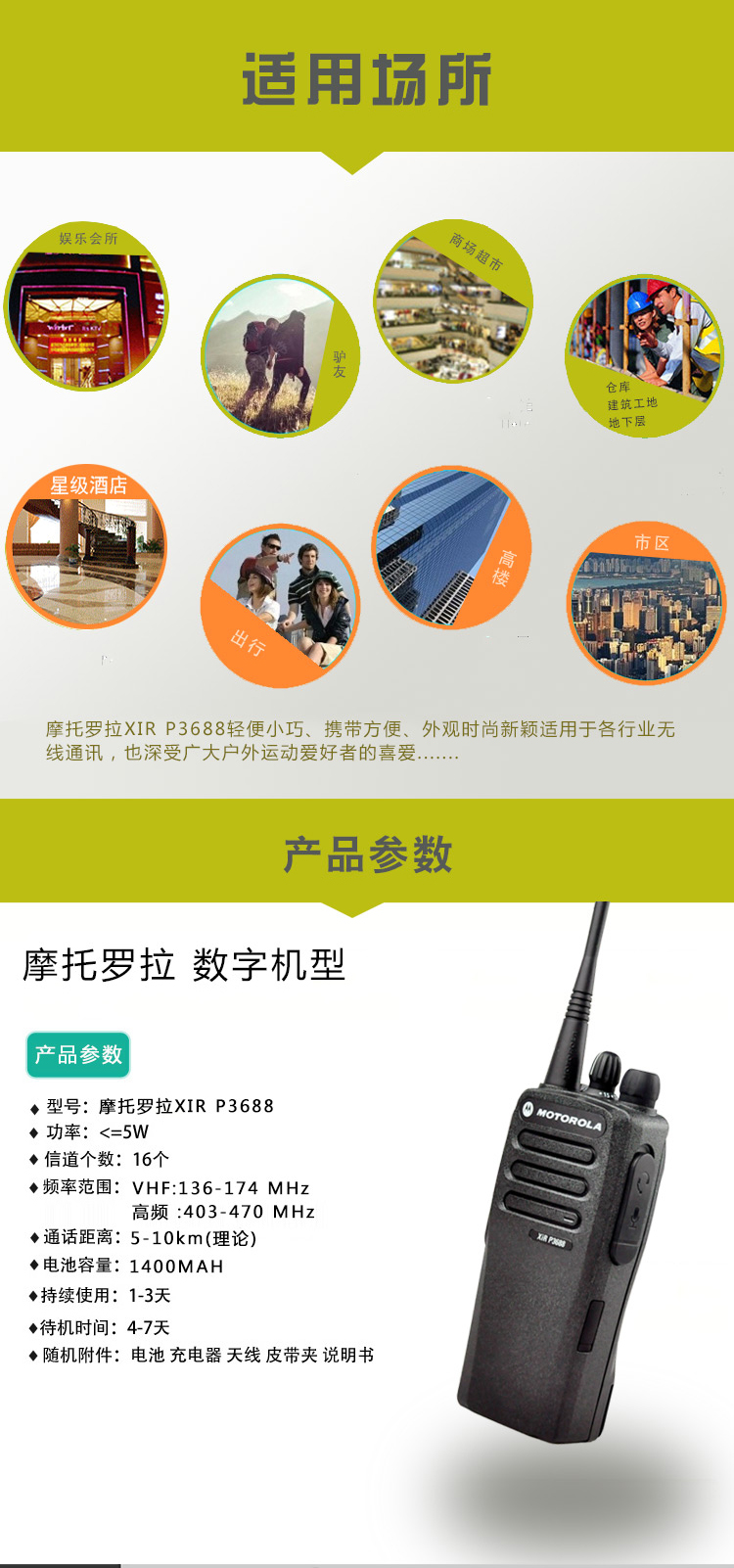 摩托羅拉對講機(jī) Xir P3688 專業(yè)數(shù)字對講電臺 (不含電池)單位:只
