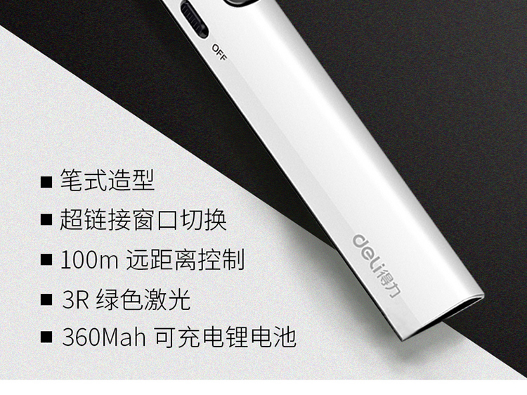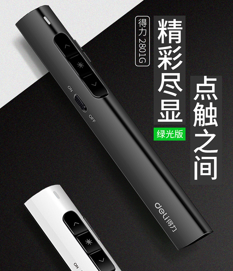 得力激光筆 2801G 可充電便攜式翻頁筆無線演示器 綠光 白桿 單位:支