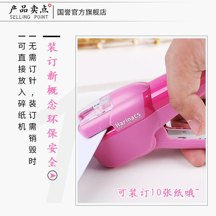 日本國(guó)譽(yù) 3653 學(xué)生辦公便攜式環(huán)保無(wú)針訂書機(jī) 10枚裝訂 綠色 單位:個(gè)