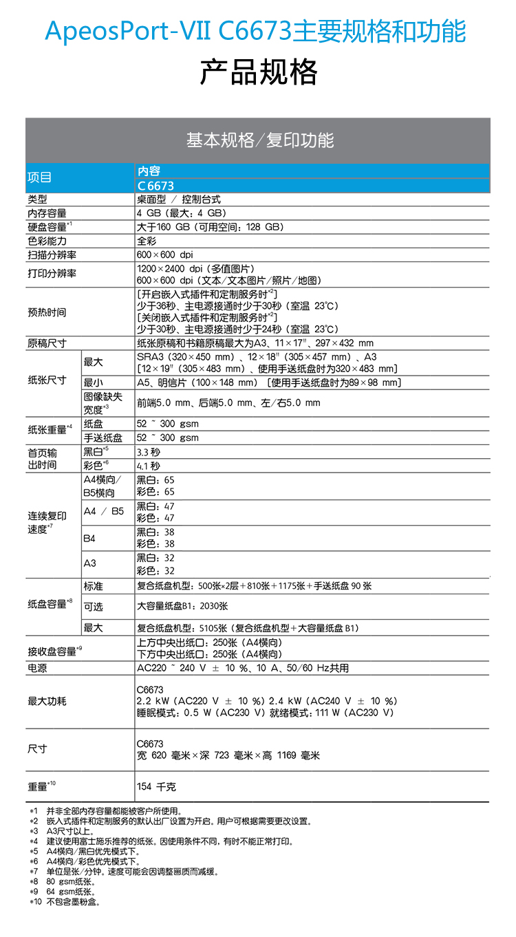富士施樂復(fù)印機(jī) ApeosPort-VII C6673 CPS SC 彩色激光復(fù)印機(jī) 單位:臺