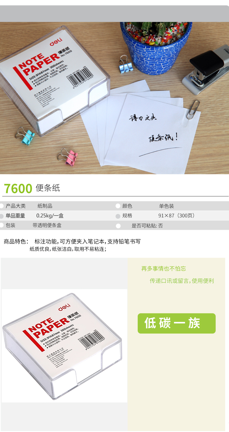 得力便利貼 7601 便簽紙/便簽本/便利貼 107×96mm 單位:盒