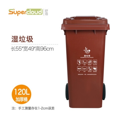 舒蔻 120L帶輪 咖啡色 濕垃圾桶 物業(yè)環(huán)衛(wèi)垃圾分類商用帶蓋分類垃圾桶果皮箱 單個(gè)裝
