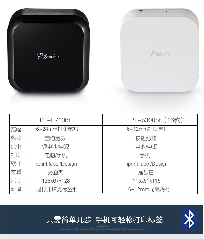 兄弟(brother)PT-P300BT 小白標簽機 藍牙連接迷你便攜家用標簽打印機條碼機緞帶打印機