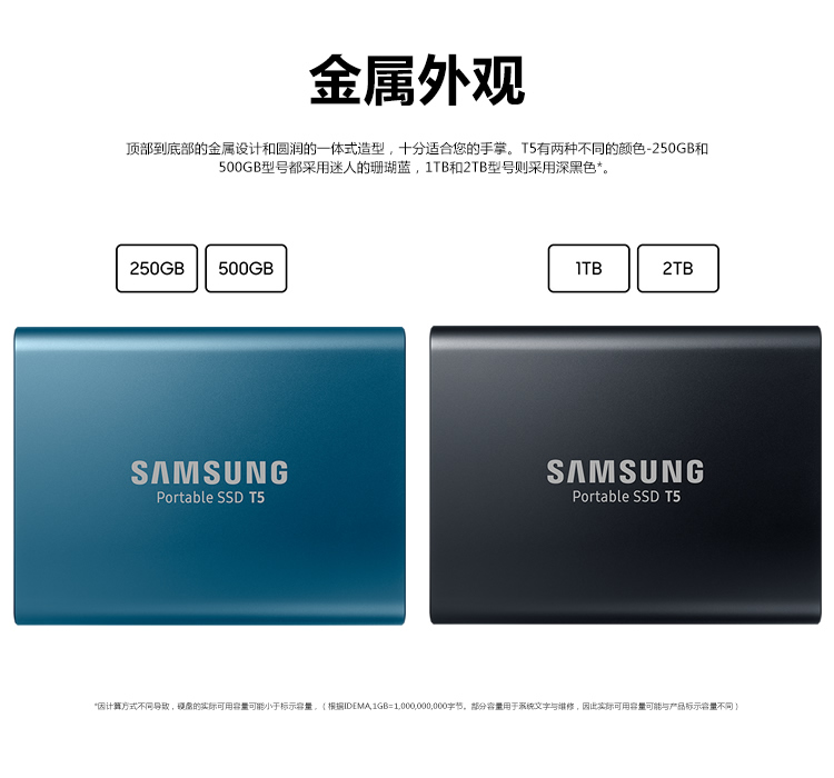 三星(SAMSUNG) 250GB Type-c USB3.1 移動硬盤 固態(tài)(PSSD)T5 珊瑚藍 傳輸速度可達540MB/s 安全便攜