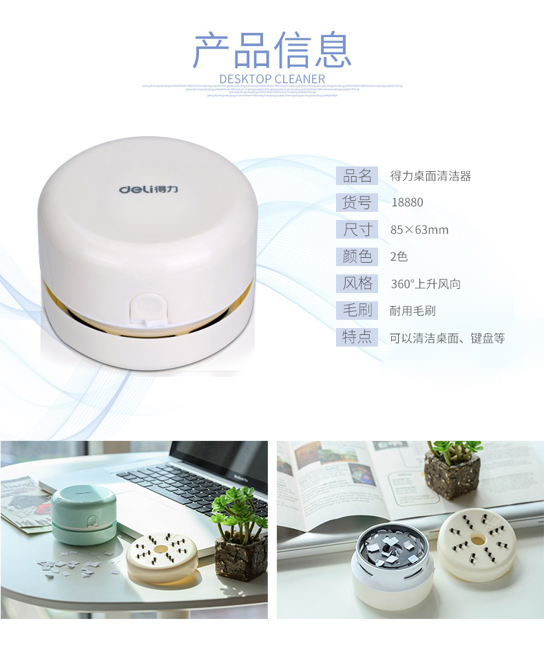 得力強吸力桌面吸塵器 18880 干電池款 白色 單位:個
