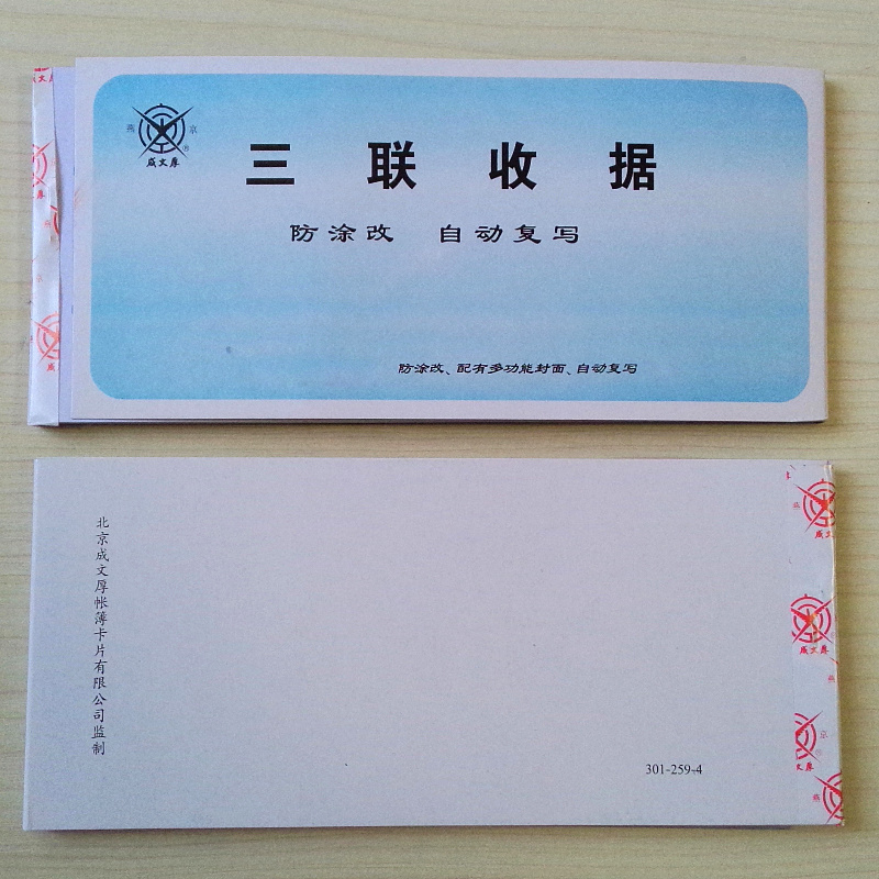 成文厚收據(jù)本 259-4 三聯(lián)無碳復寫 防涂改 單位:本