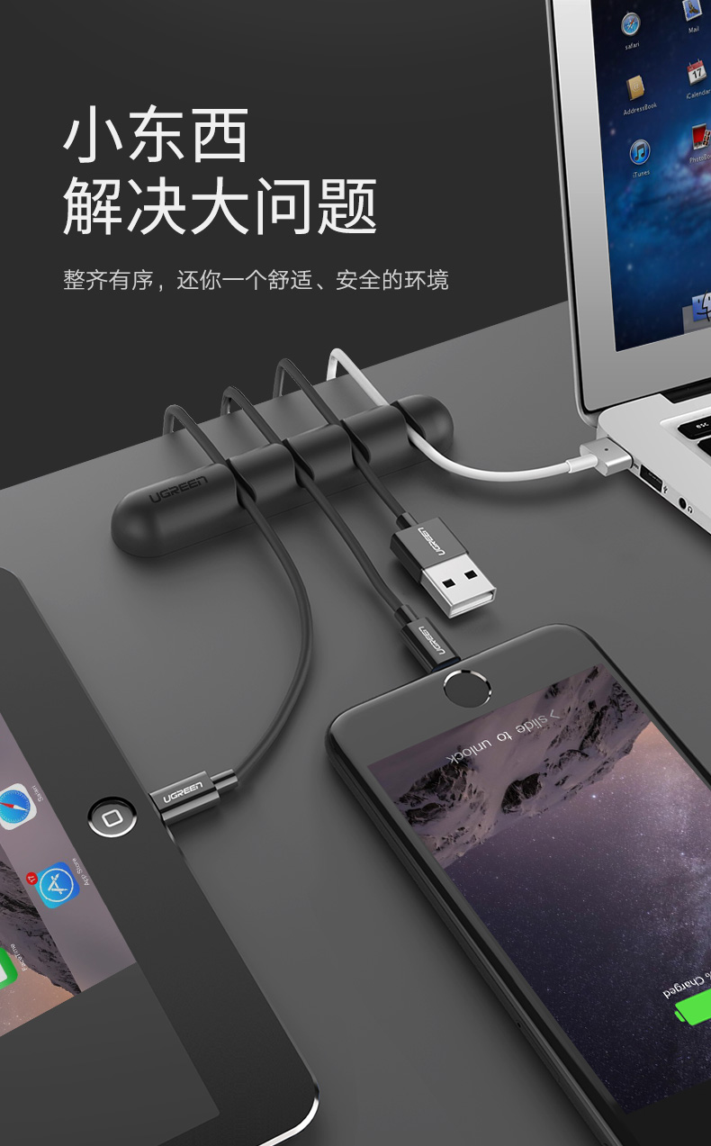 綠聯(lián)桌面理線器 LP114 電腦桌面理線器纏線器 黑色 2個(gè)裝 單位:盒