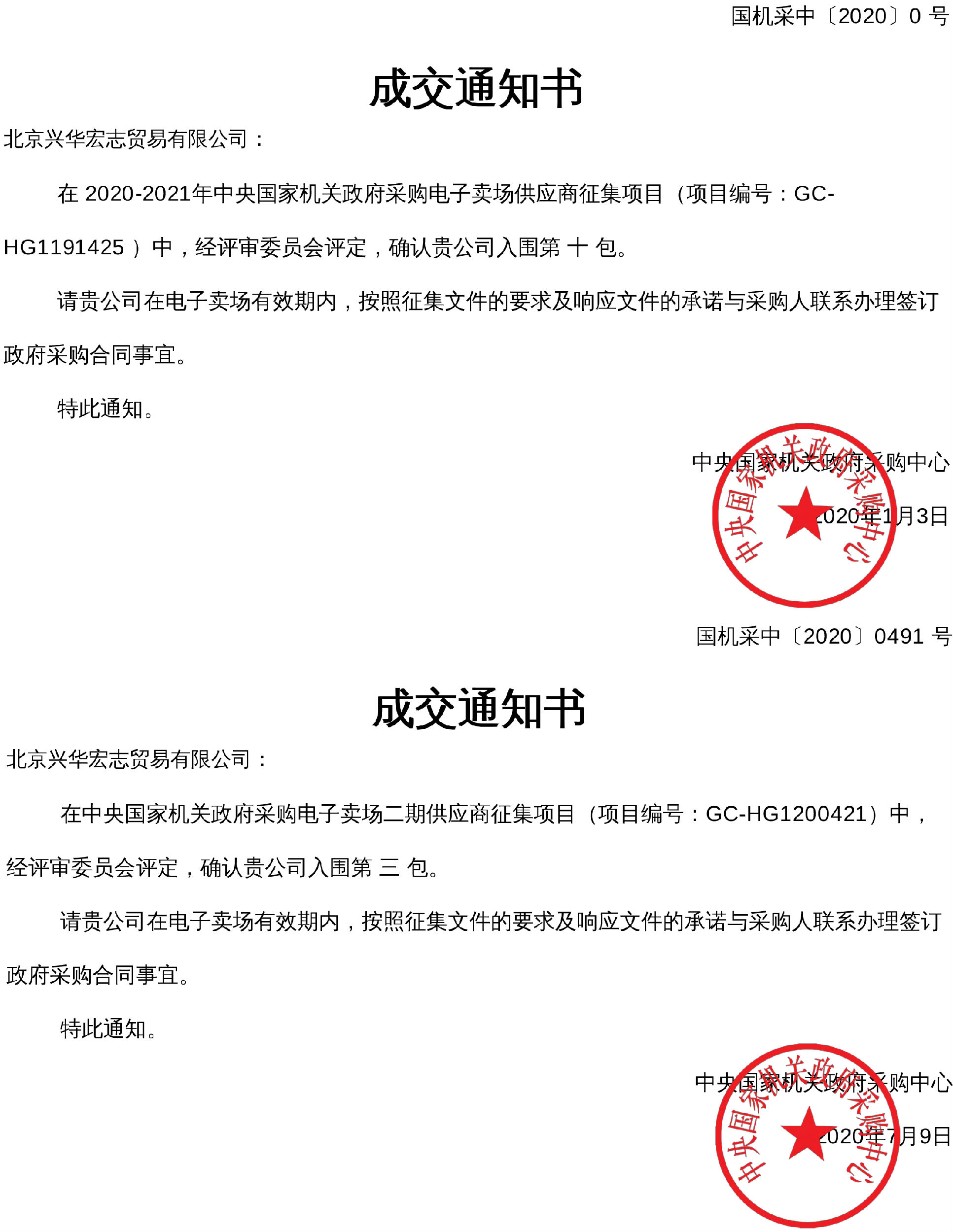 成交通知書