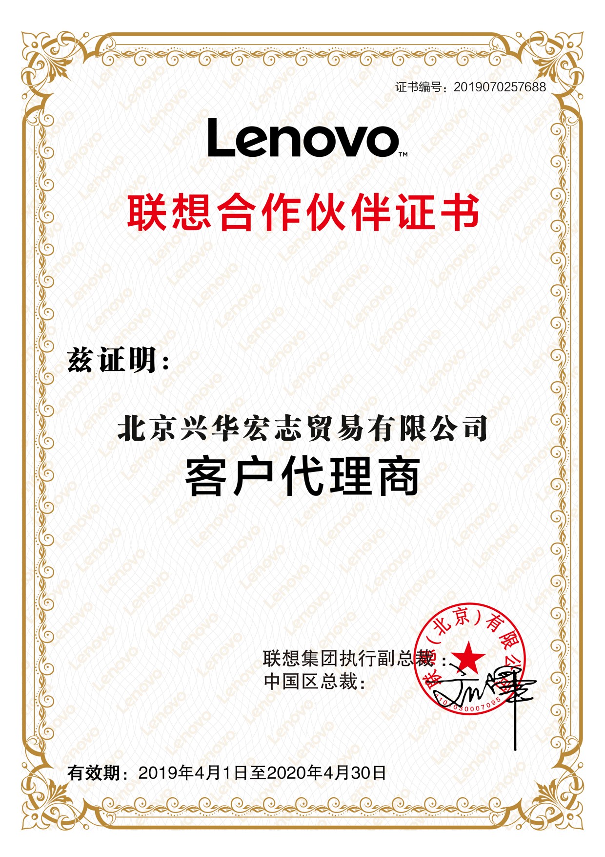 興華辦公榮獲聯(lián)想集團股份有限公司授權(quán)