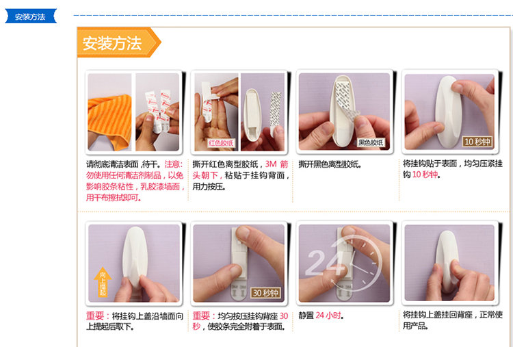 3M無痕粘鉤掛鉤 小號 輕松取不留痕 單位:卡