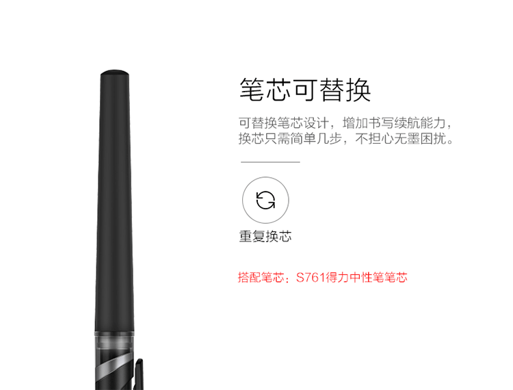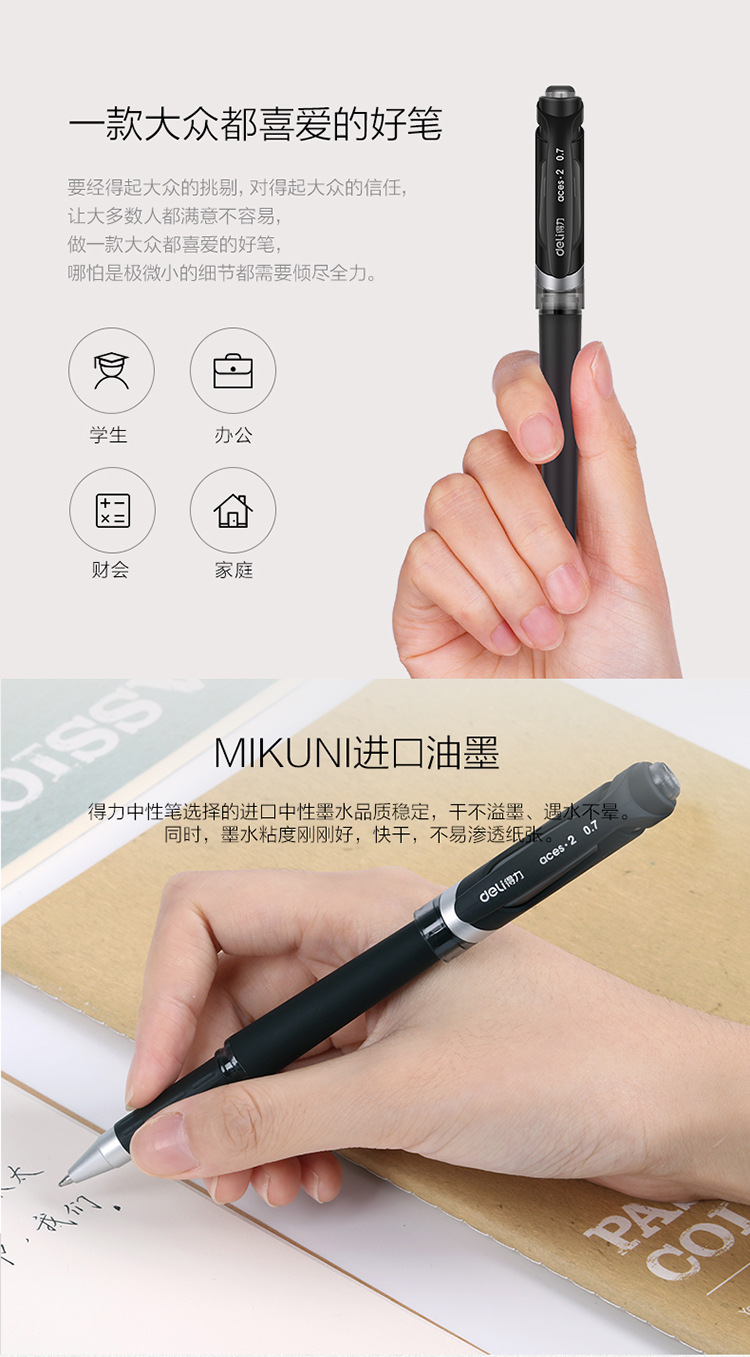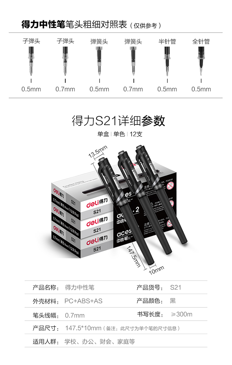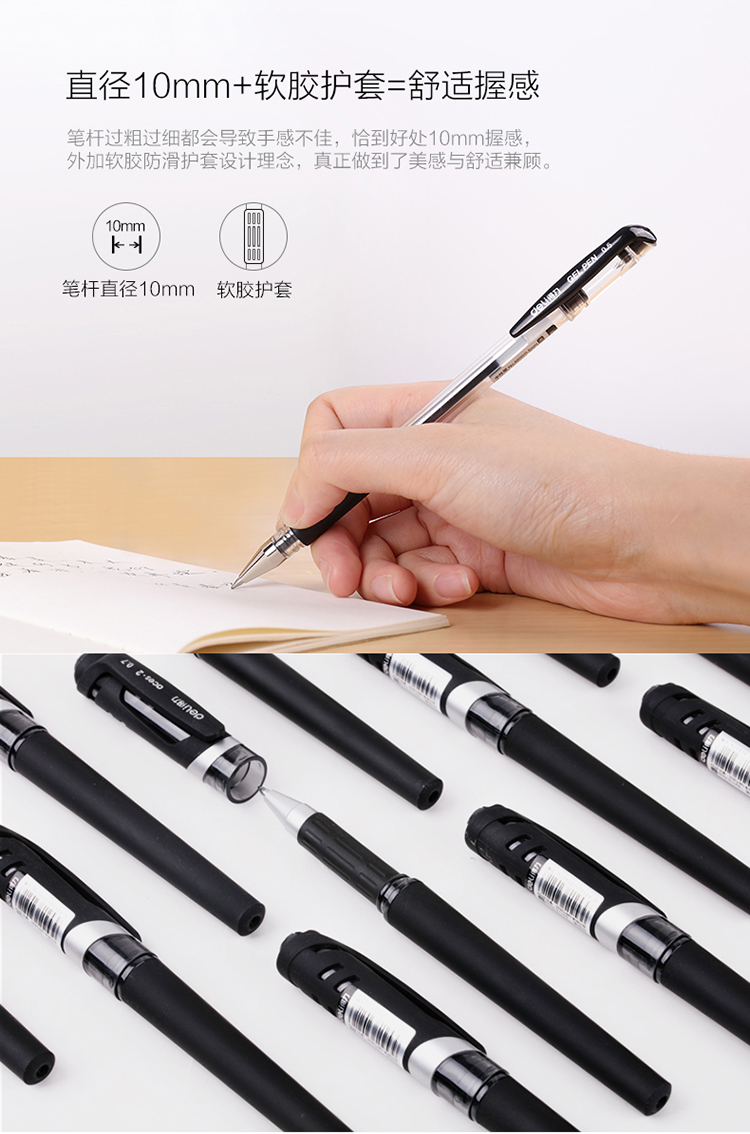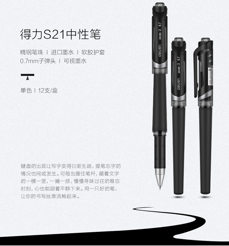 得力 S21 0.7mm 磨砂筆桿黑色中性筆簽字筆 12支/盒