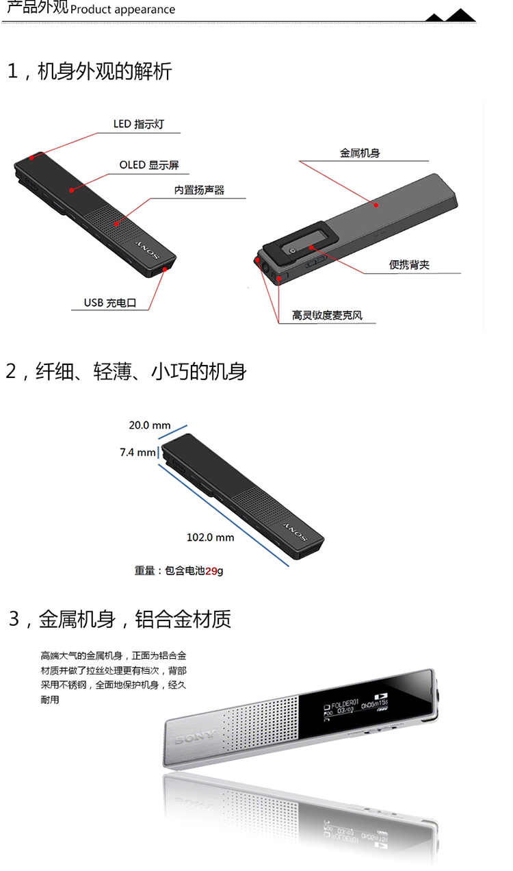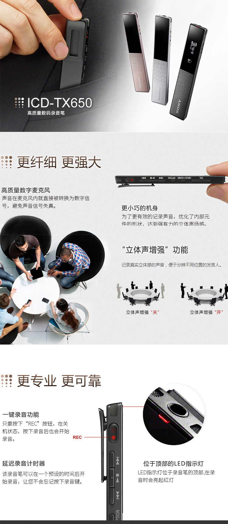 索尼錄音筆 ICD-TX650 數(shù)碼錄音棒 16G 黑色 單位:支