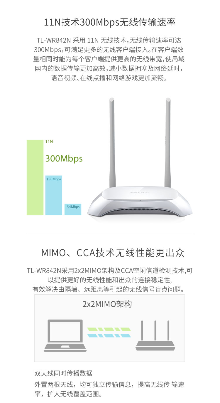 普聯(lián)TP-LINK TL-WR842N 300M智能wifi無線路由器 單位:個