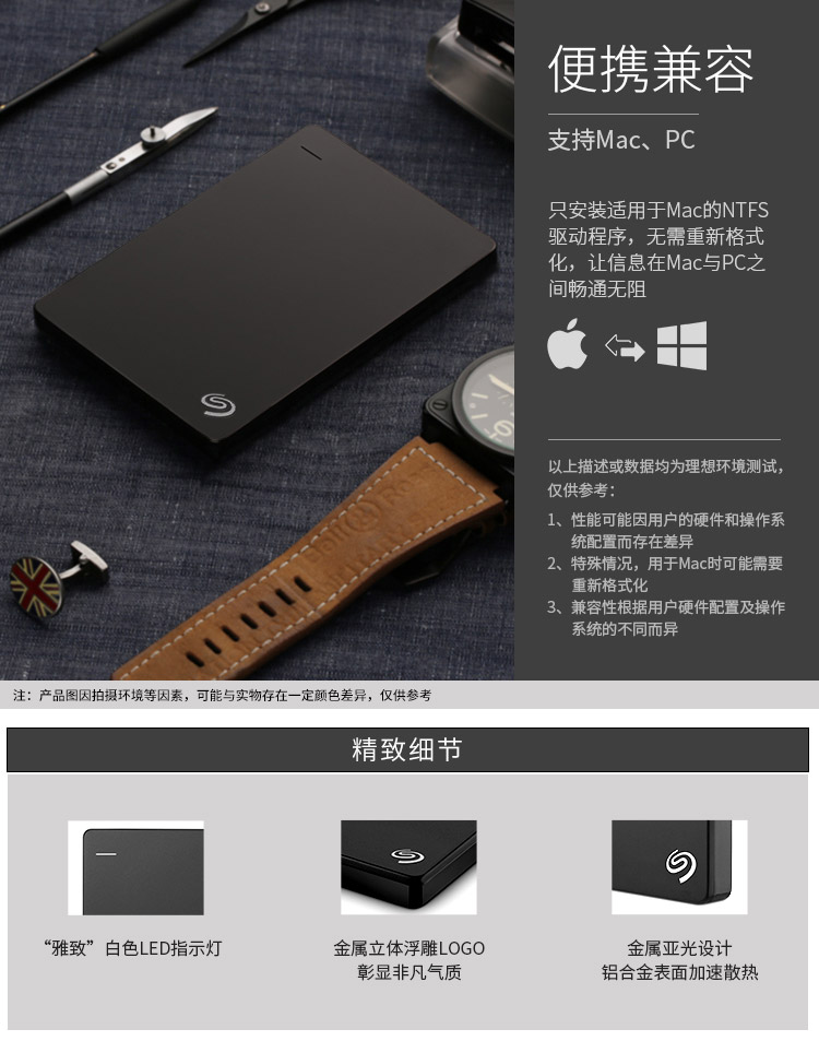 希捷移動硬盤 睿品Backup Plus 2TB USB3.0 2.5英寸 金屬隕石黑(STDR2000300) 單位:塊