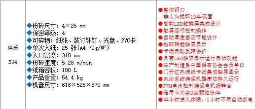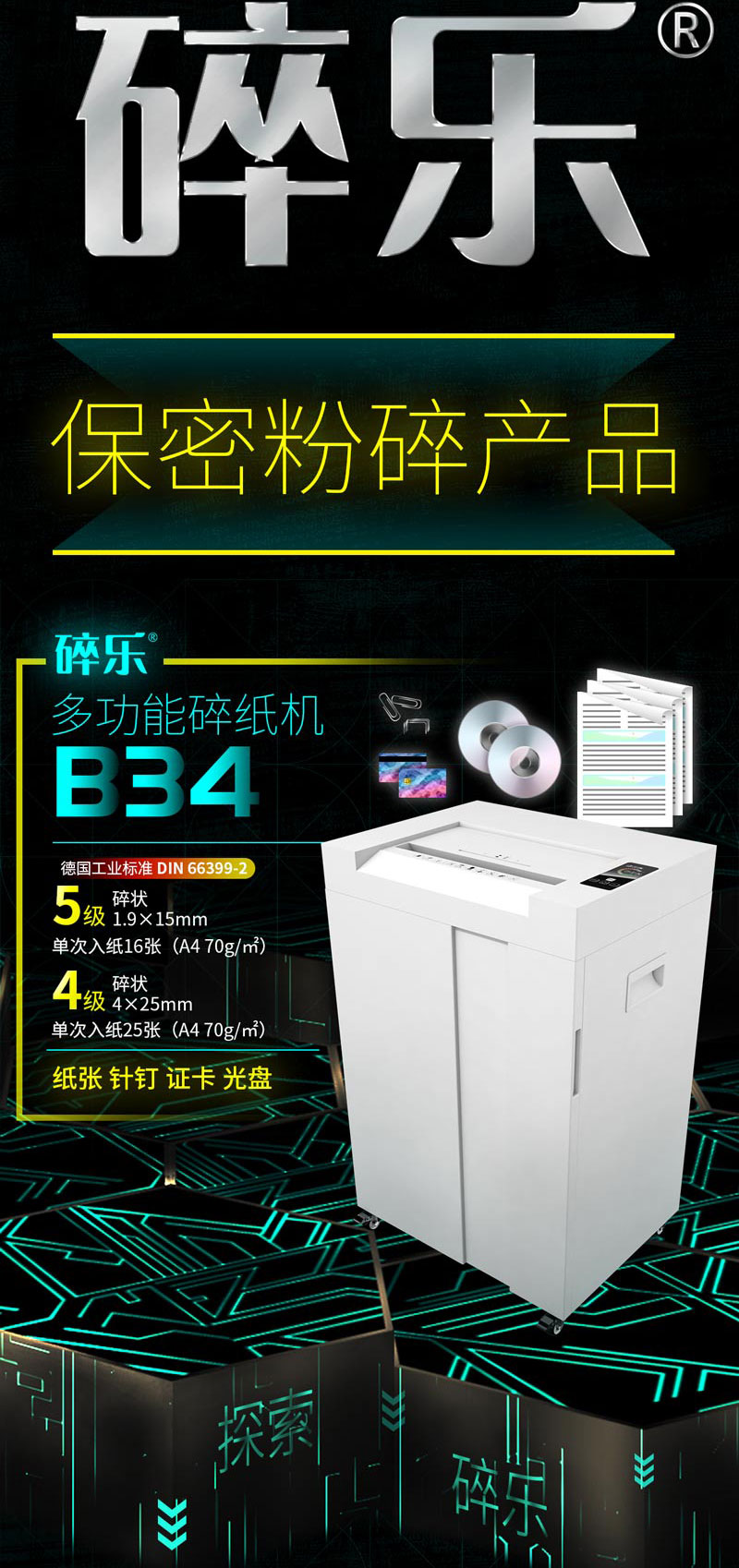 碎樂碎紙機 B34 德[DIN 66399]4級保密 辦公碎紙機 多功能碎紙機 單位:臺