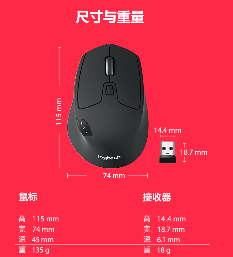 羅技(Logitech)M720 藍牙優(yōu)聯(lián)雙模無線鼠標(biāo) 藍牙鼠標(biāo) 側(cè)鍵 大手鼠標(biāo) 舒適