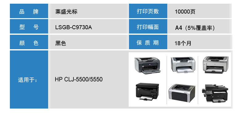 萊盛光標(biāo) LSGB-C9730A 黑色粉盒 適用:HP CLJ-5500/5550 單位:支