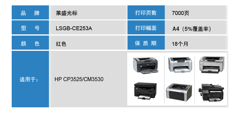 萊盛光標(biāo) LSGB-CE253A 紅色粉盒 適用:HP CP3525/CM3530 單位:支