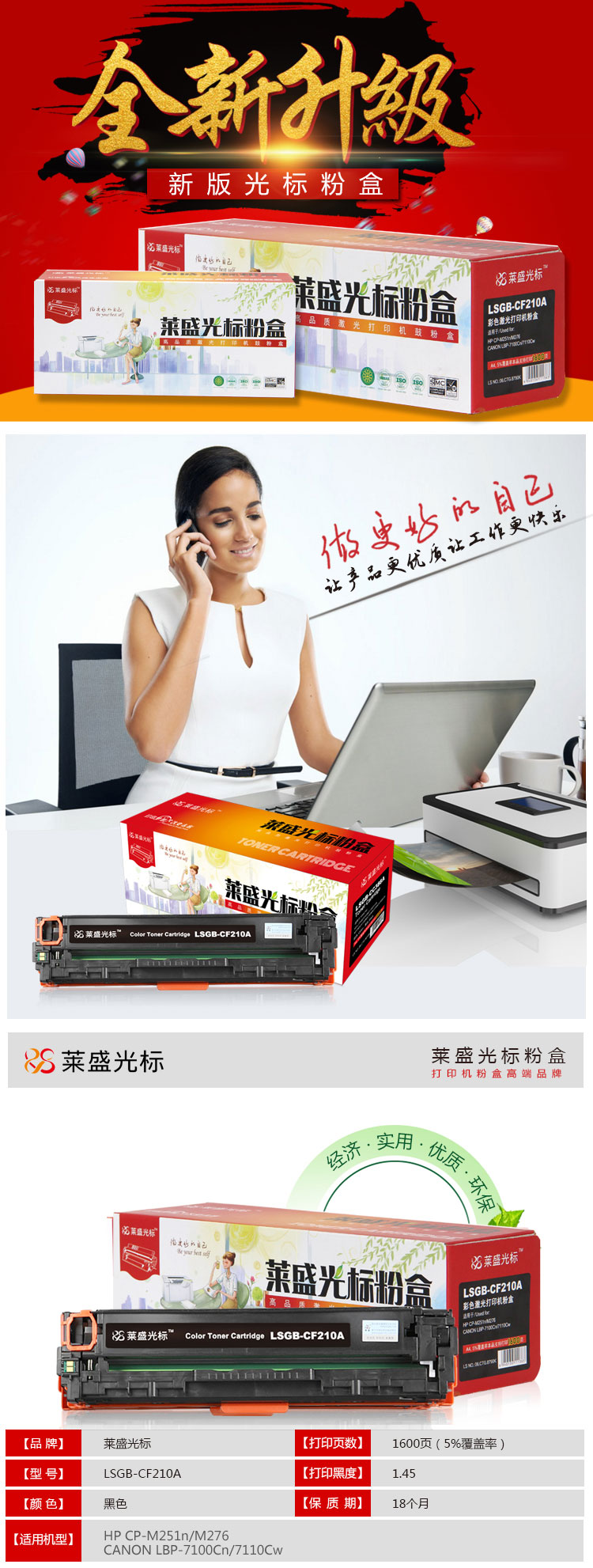 萊盛光標(biāo) LSGB-CF210A 黑色粉盒 適用:HP CP-M251n/M276 CANON LBP-7100Cn 單位:支