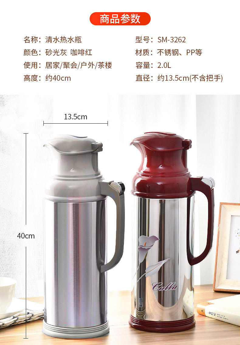清水保溫壺 SM-3262不銹鋼咖啡壺 玻璃內(nèi)膽保溫瓶2L單位:個(gè)