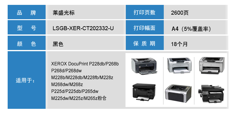 萊盛光標(biāo) LSGB-XER-CT202332-U 黑色粉盒 適用:XEROX DocuPrint P228db/P268b 單位:支