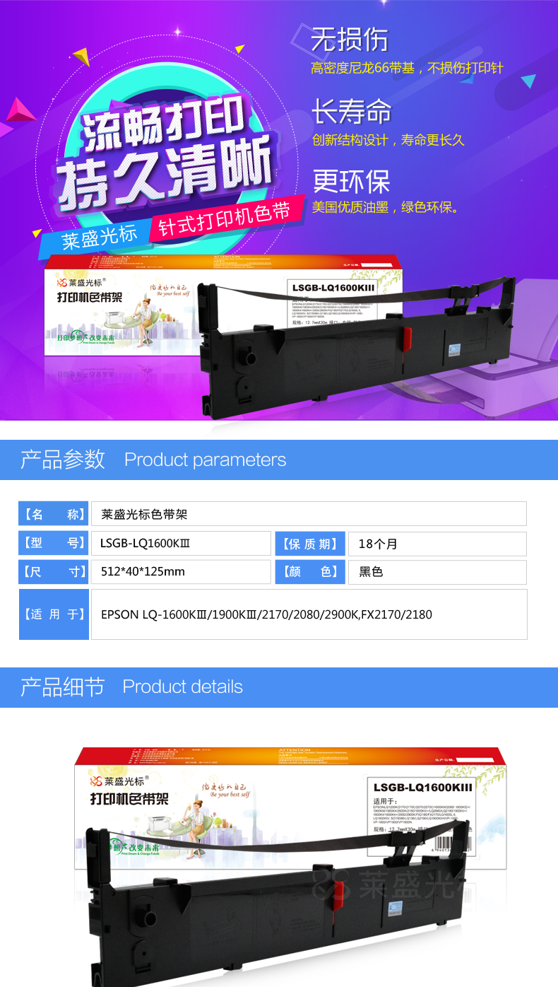 萊盛光標(biāo) LQ-1600KⅢ 色帶架 適用:EPSON LQ-1600KⅢ/1900KⅢ/2170/2080/2900K,FX2170 單位:支