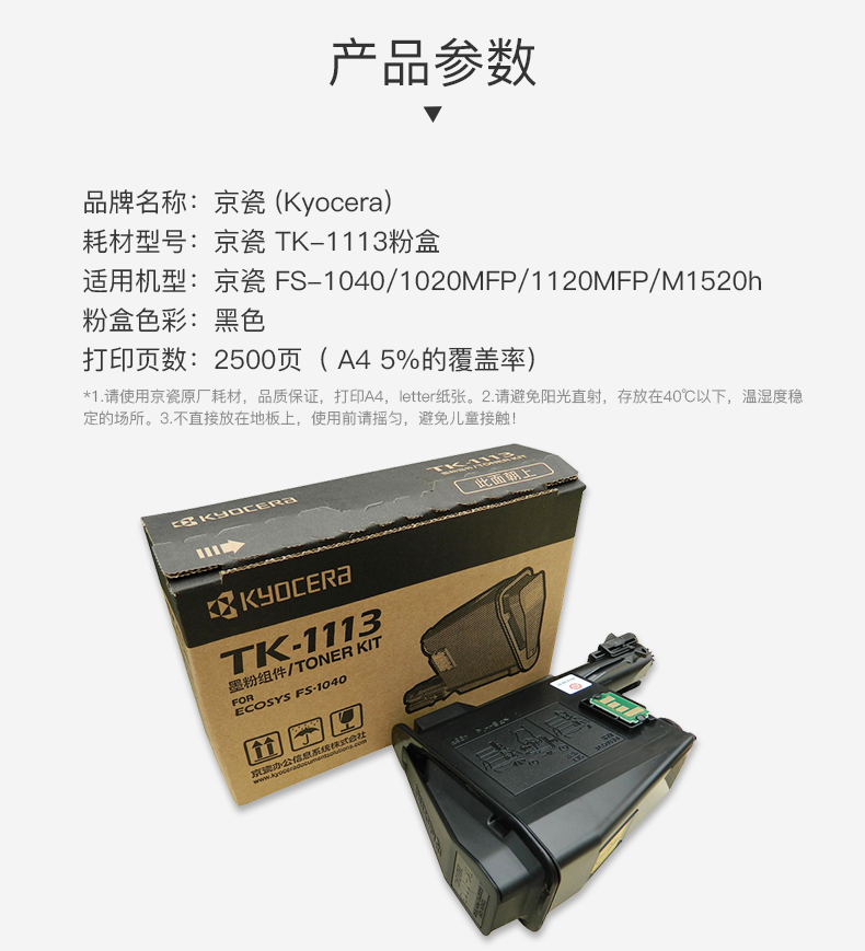京瓷墨粉 TK-1113 黑色墨粉 適用FS-1040/1020/1120MFP/1520H打印一體機(jī) 單位:支