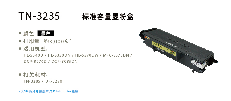 兄弟墨粉 TN-3235 黑色粉盒 適用:HL-5340D/5350DN/5370DW/DCP-8085DN/MFC-8880DN 單位:支
