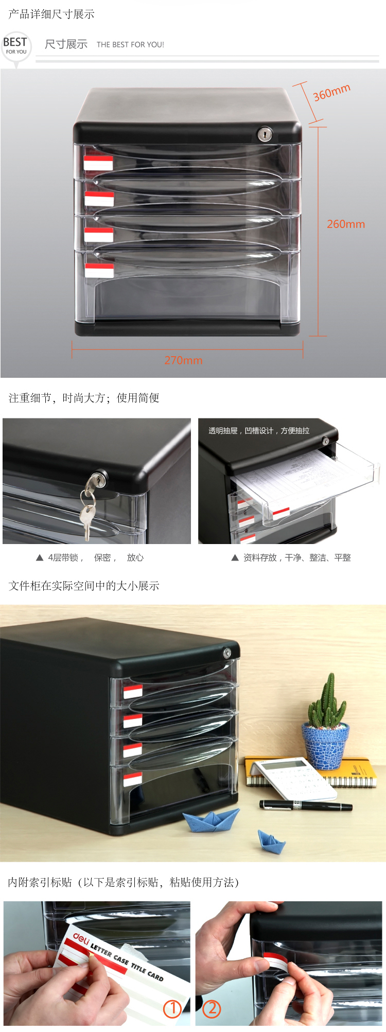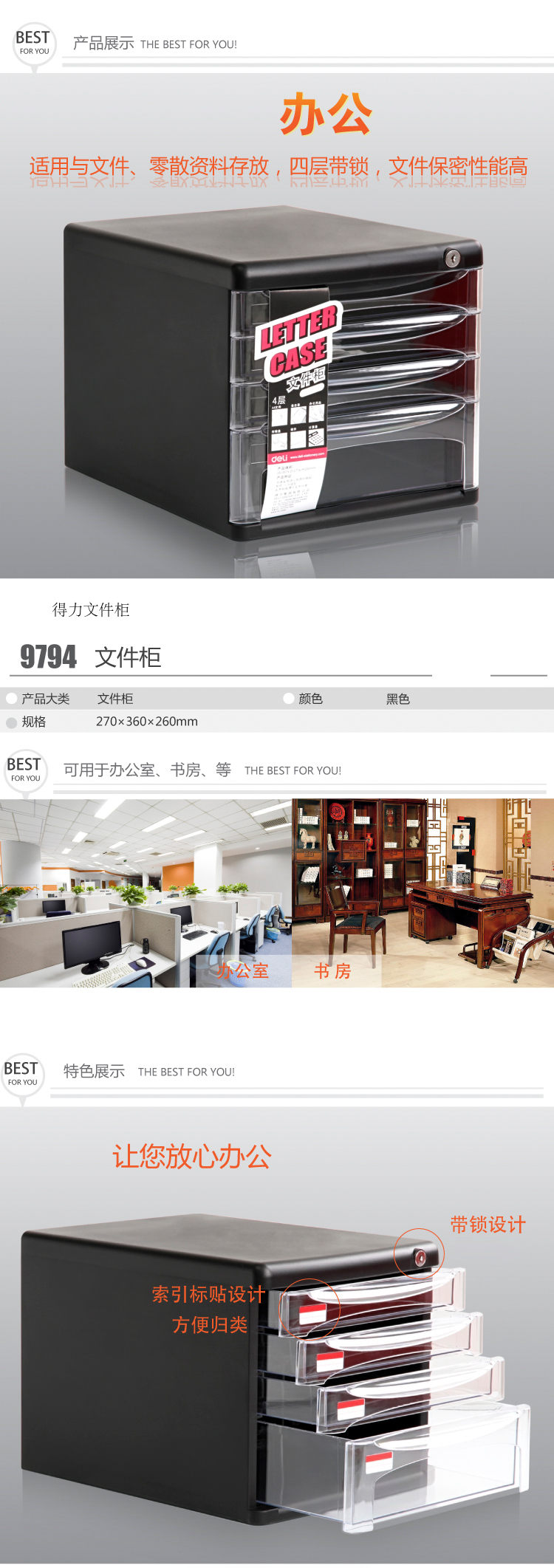 得力文件柜 9794 四層帶鎖桌面文件柜黑色 單位:個