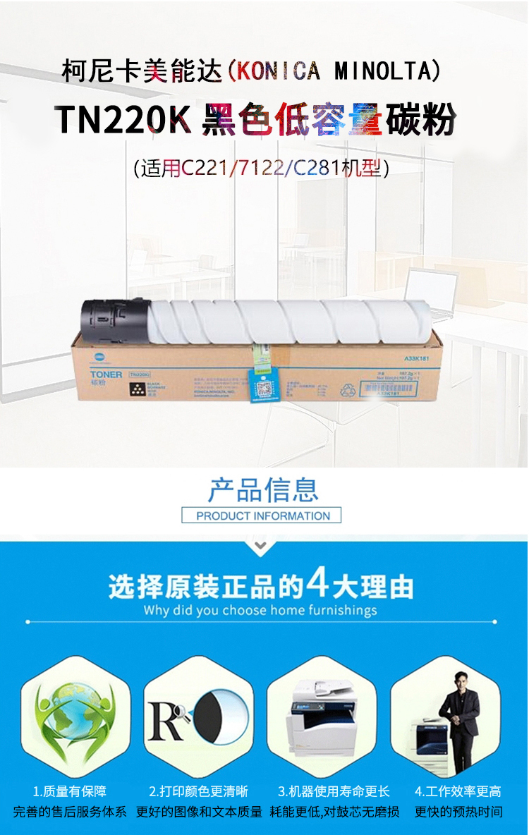 柯尼卡美能達 TN220K 黑色粉盒 低容 適用柯美C221S/C221/C281/C7122/C712復合機 單位:支