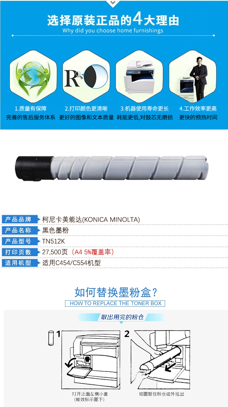 柯尼卡美能達(dá) TN512K 黑色墨粉 適用C454/C554 單位:支