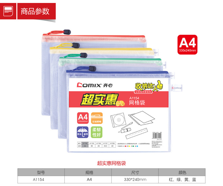 齊心拉鏈袋 A1154 網(wǎng)格拉鏈袋 單位:個