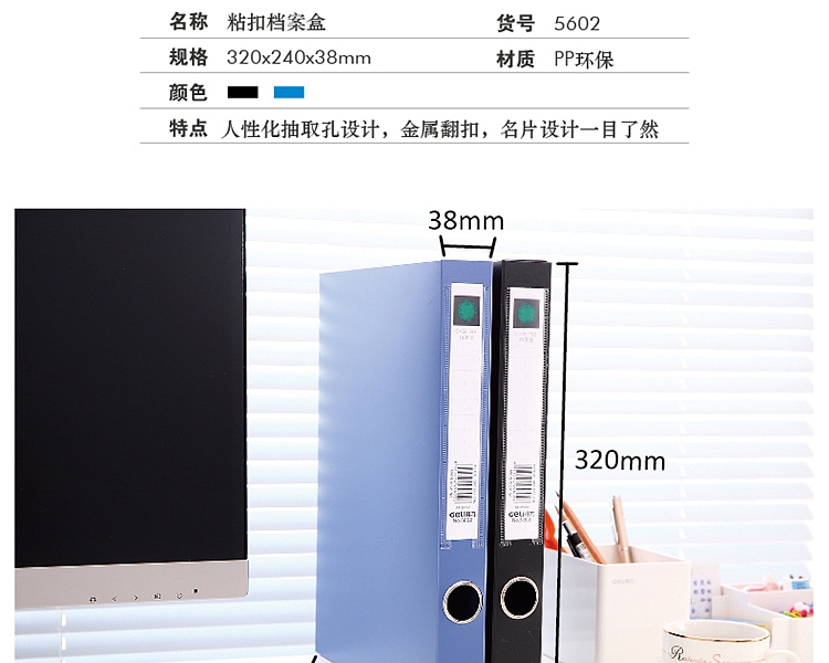 商品名稱:得力檔案盒文件資料盒 A4資料收納大塑料文件盒檔案盒 5602(寬38mm) 單個(gè)裝