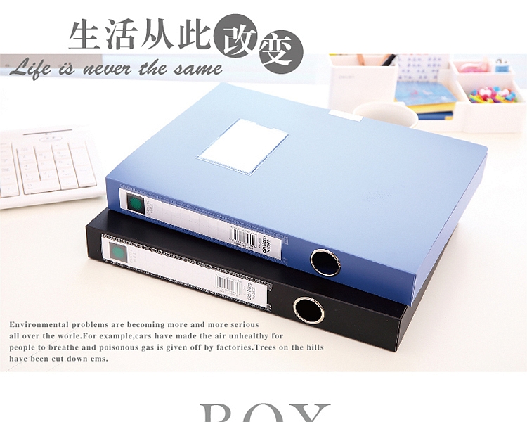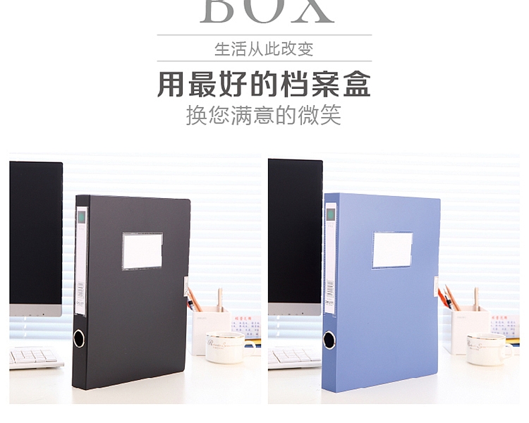 加厚A4粘扣檔案盒塑料文件夾資料收納文件盒 背寬35mm 辦公用品 藍(lán)色