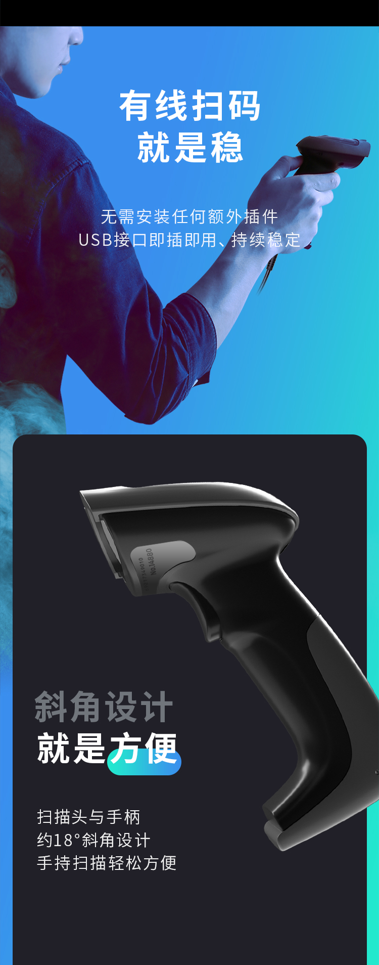 得力掃描槍 14880黑 一維碼掃描槍掃碼槍商品條碼槍 單位:個(gè)
