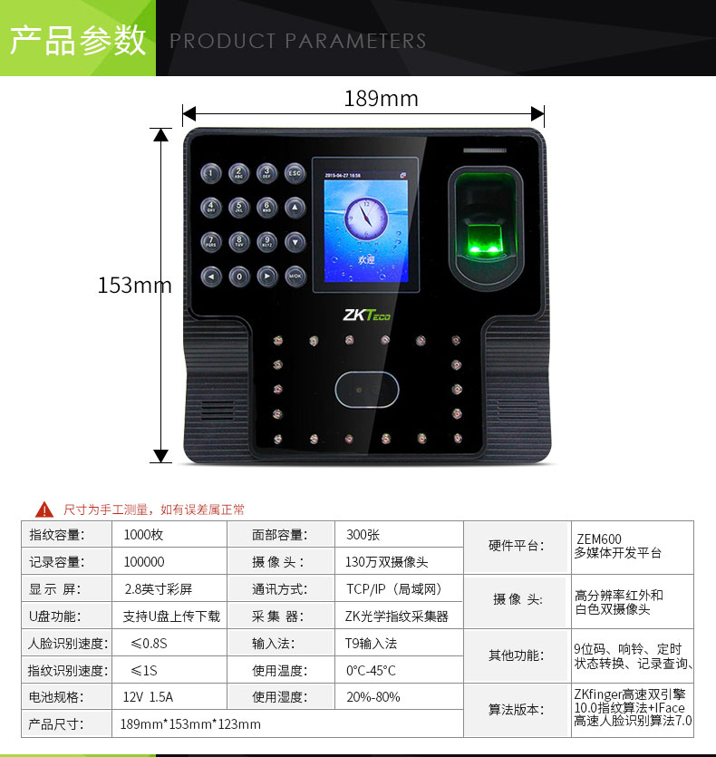 中控智慧考勤機(jī) iFace102 考勤機(jī) 單位:臺(tái)