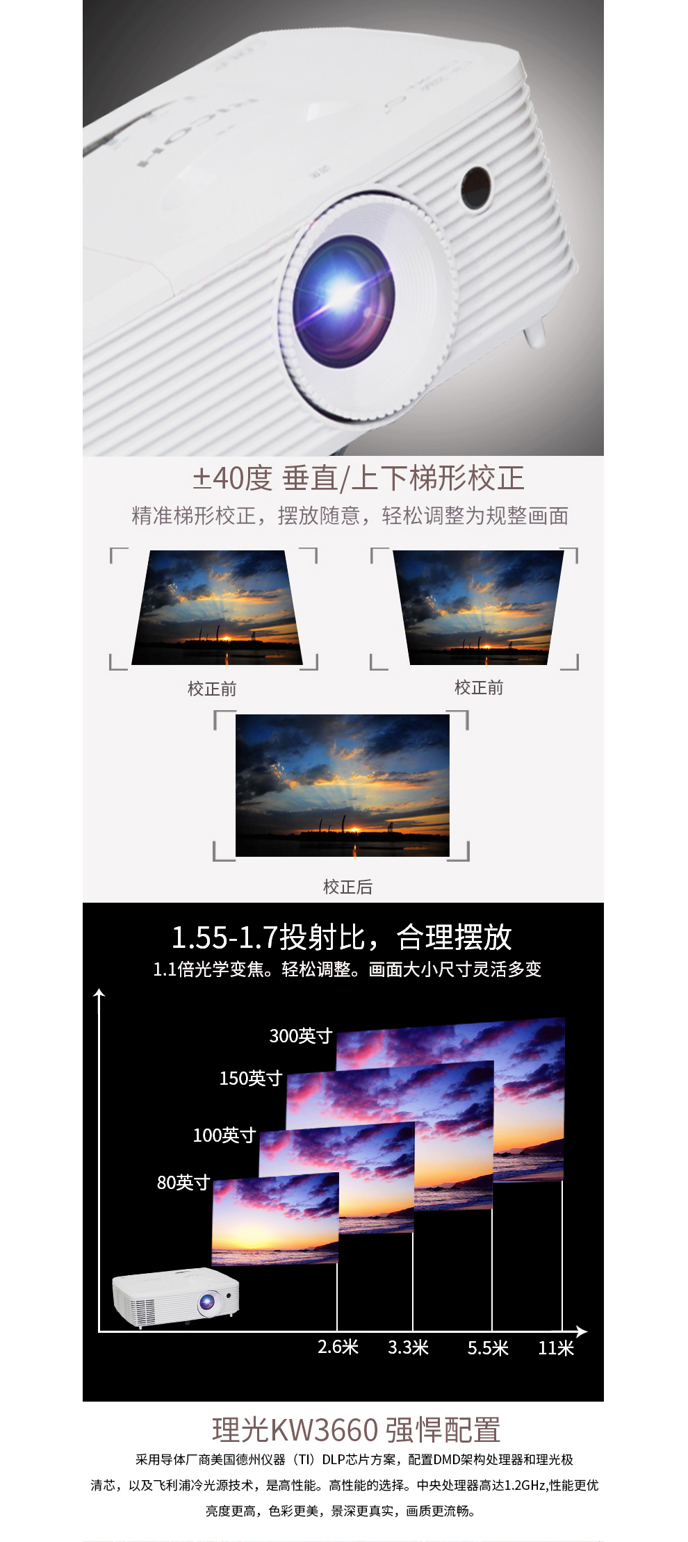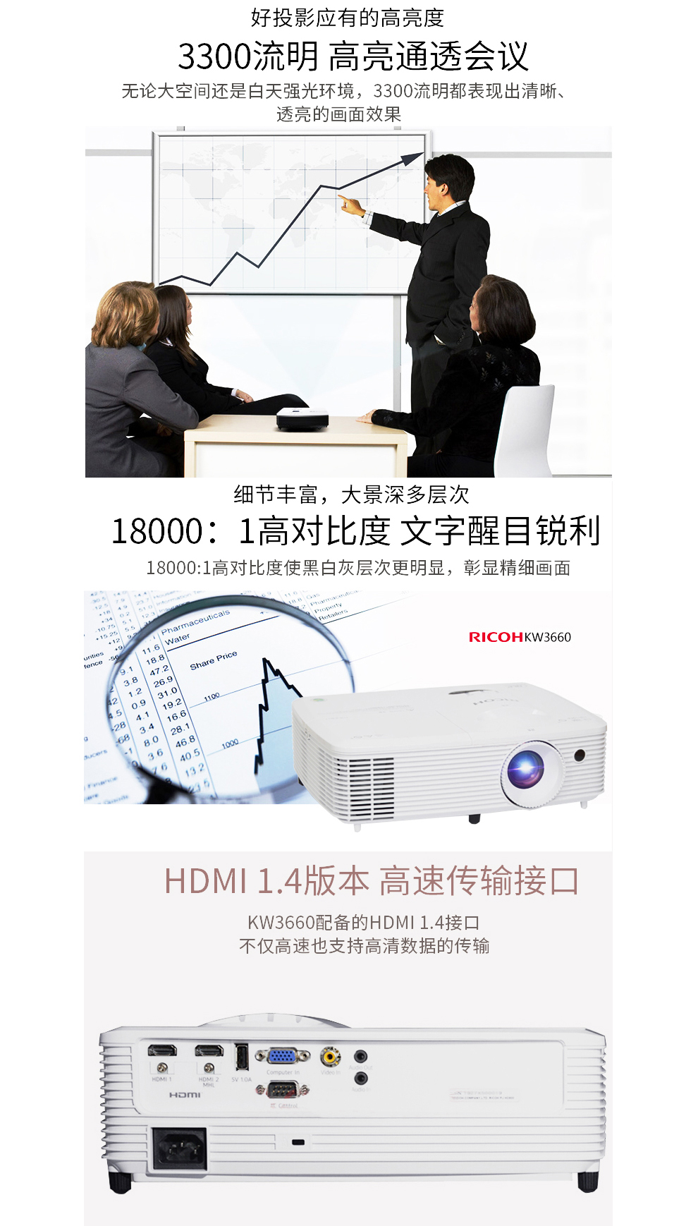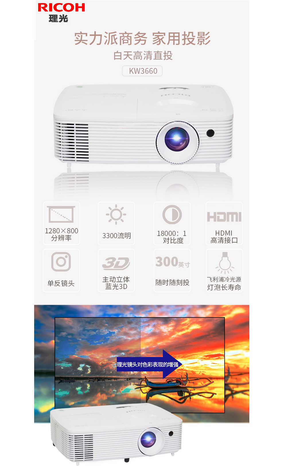 理光投影機(jī) PJ-KW3660 投影儀辦公教學(xué)便攜式 單位:臺(tái)