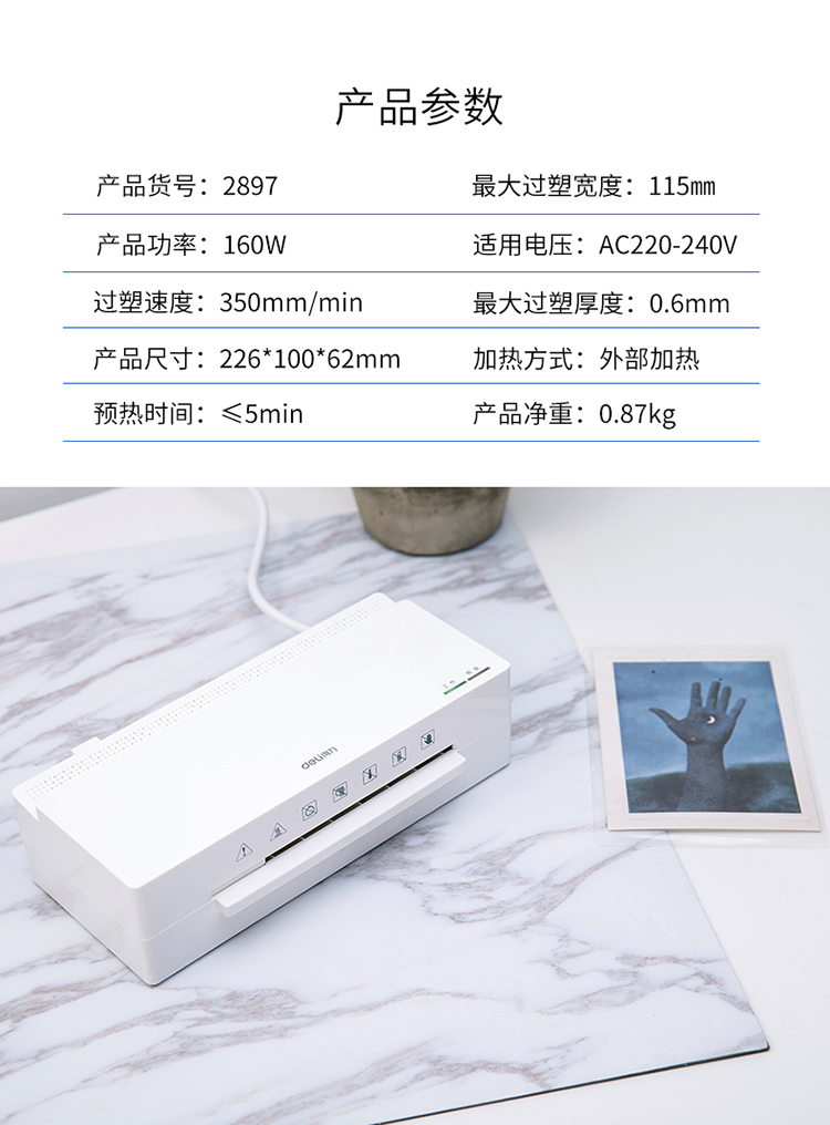 得力塑封機 2897 A6以內(nèi)照片過塑機迷你 單位:臺