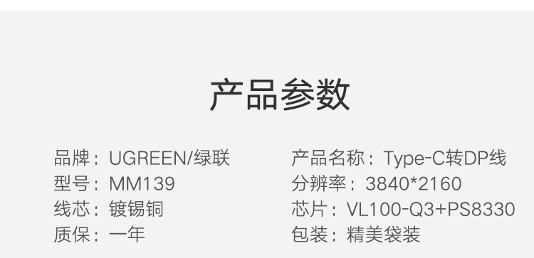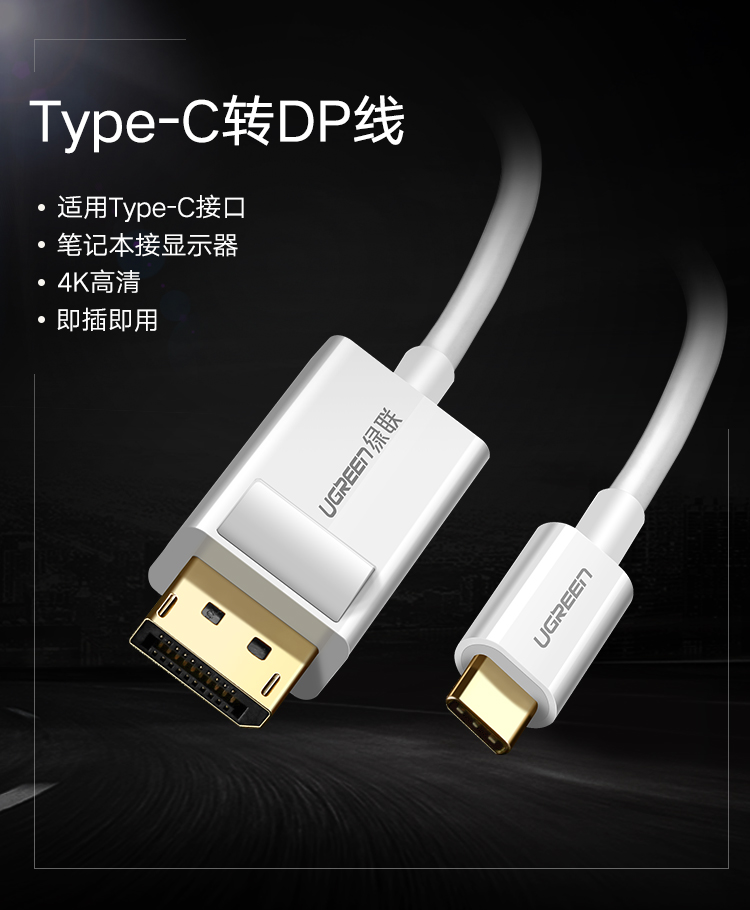 綠聯(lián) MM139 擴(kuò)展塢 通用蘋果華為P30設(shè)備 USB-C轉(zhuǎn)DP轉(zhuǎn)換器 高清4K視頻傳輸 1.5米 黑色 單個(gè)裝