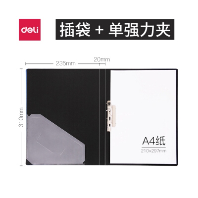 得力(deli) 5301 A4單強(qiáng)力夾+插袋 實(shí)用文件夾 黑色 單只裝