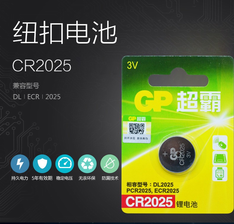 超霸電池 CR2025紐扣電池2粒 單位:卡