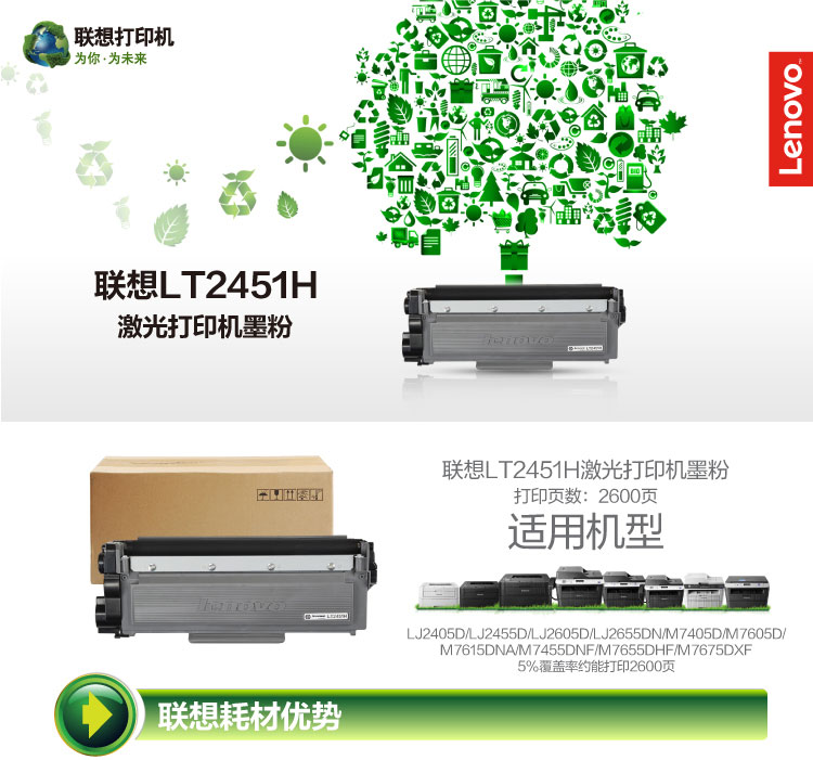 聯(lián)想粉盒 LT2451H 黑色 高容(適用LJ2605D/LJ2655DN/M7605D/M7615DNA/M7455DNF/7655DHF打印機(jī))單位:支