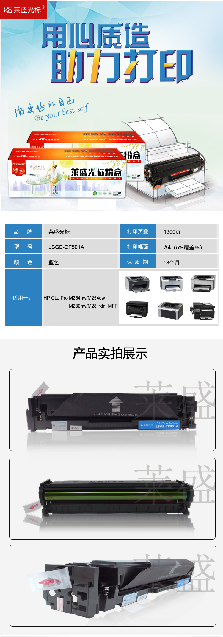 萊盛光標 LSGB-CF501A 青色硒鼓 適用:HP m254nw/m254dw/m281fdn/m280fdw 單位:支