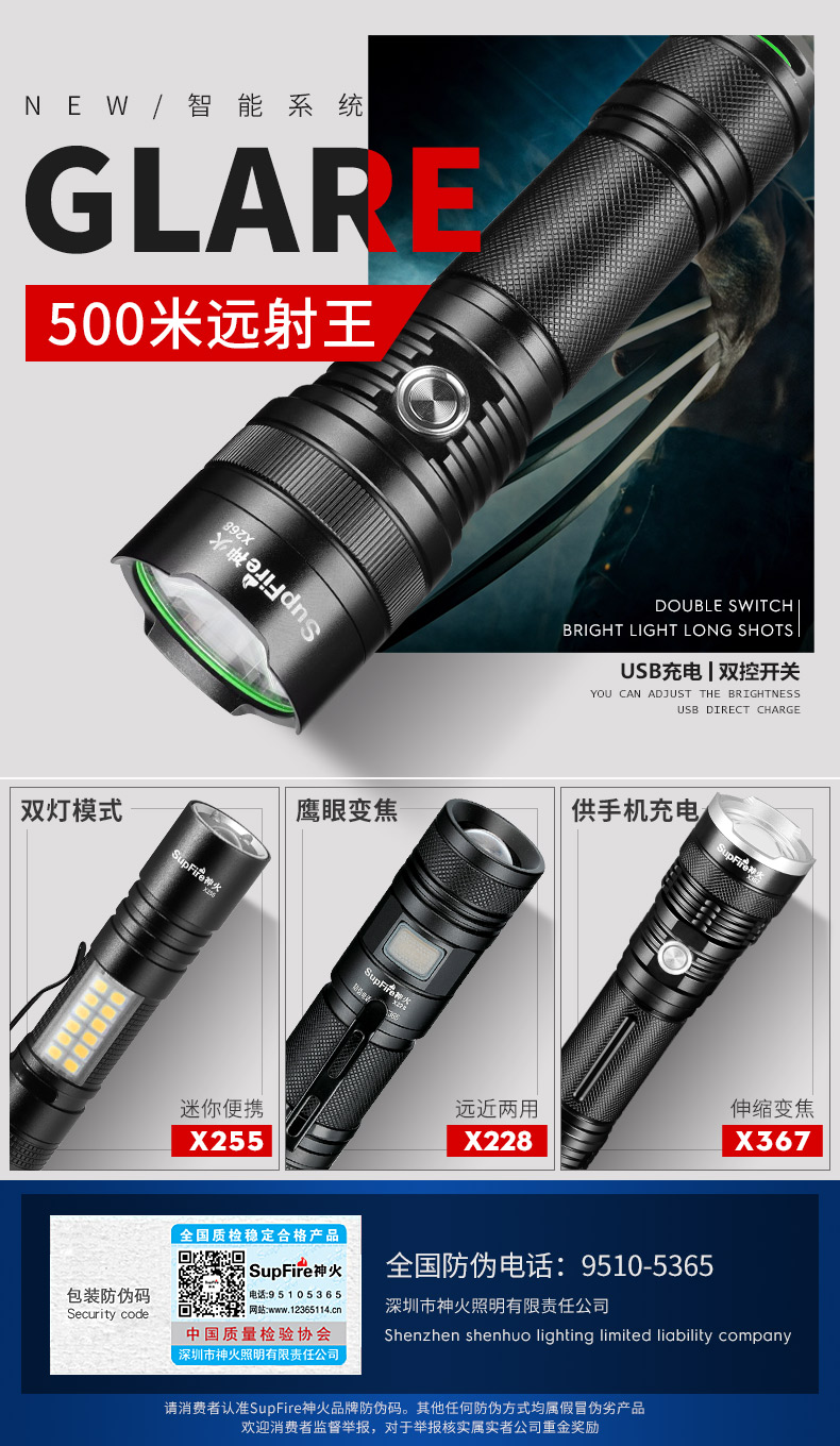 神火強光手電筒 A2-X 變焦可調(diào)焦USB充電式家用戶外遠射迷你戰(zhàn)術(shù)防身 單位:個