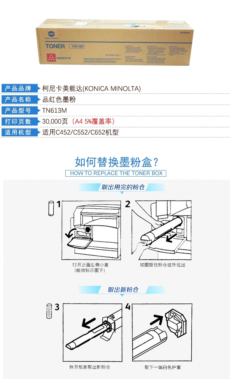 柯尼卡美能達 TN613M 紅色墨粉 適用C452/C552/C652 單位:支